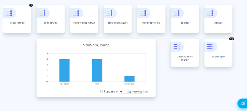 למשל, כאשר שדה תאריך יהיה עם קיבוץ 1, הנתונים בדו"ח יוצגו בחלוקה לתאריכים. אם בנוסף, שדה סטטוס יהיה עם קיבוץ 2, תהיה חלוקה פנימית גם לפי סטטוסים. מתחת לתאריכים בדו"ח. - קיבוץ בכותרת: שדה זה יופיע בכותרת הראשית/משנית של השדות המקובצים.